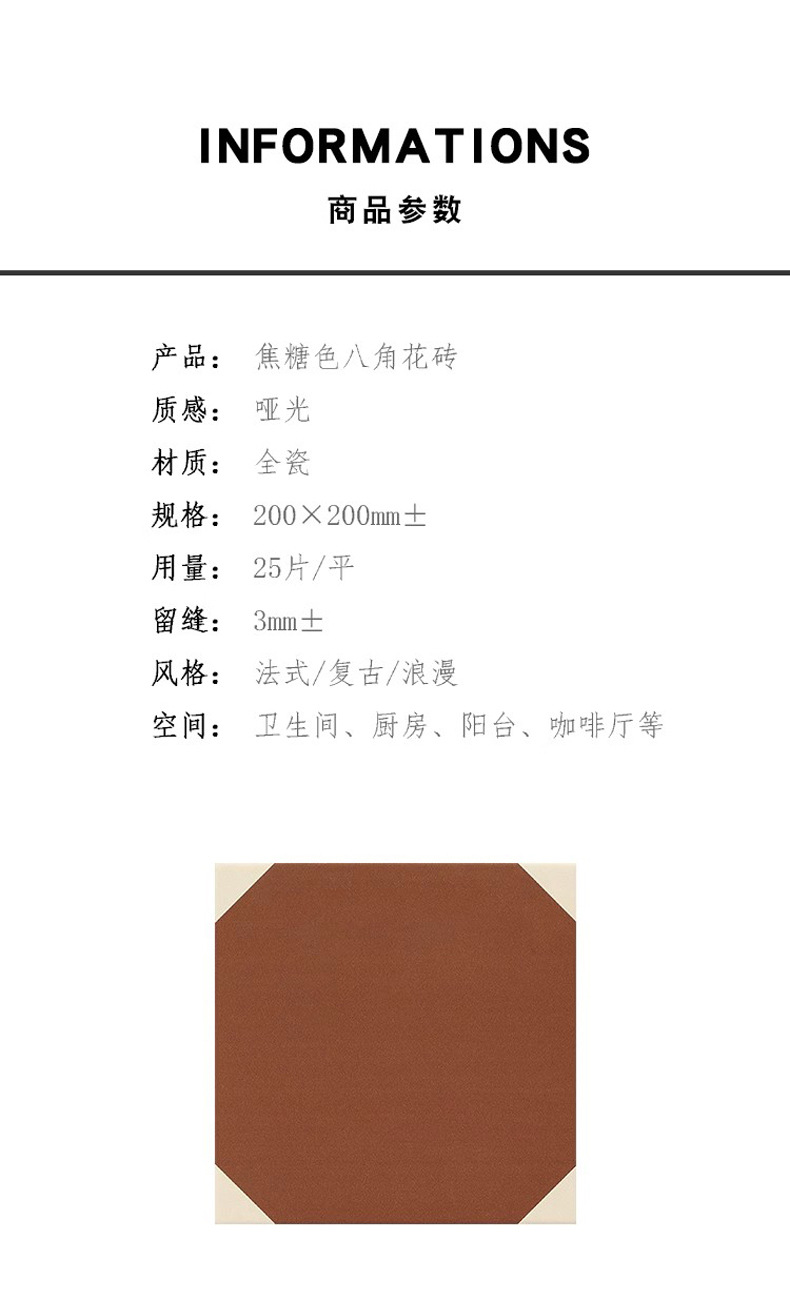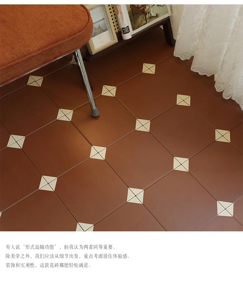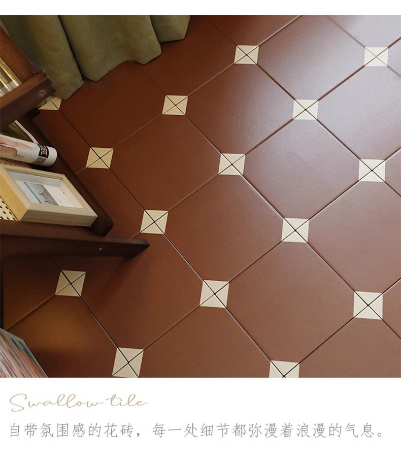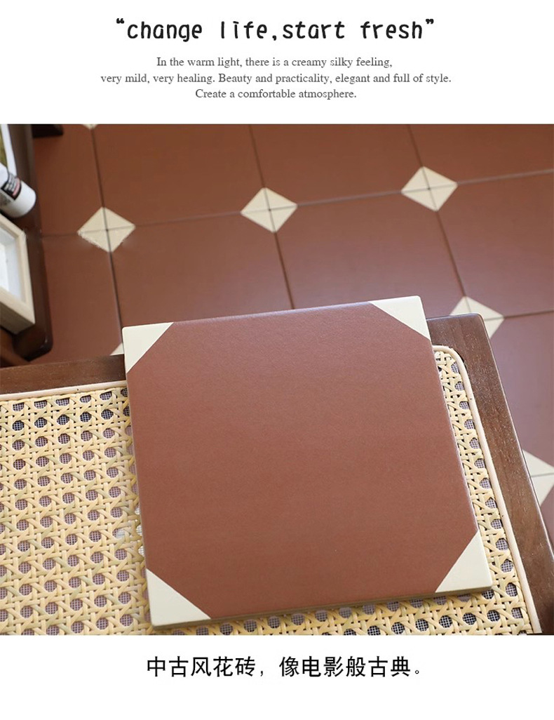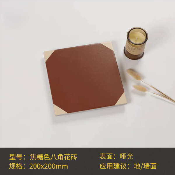 中古风花砖焦糖色地砖咖啡店200×200mm(101-55)