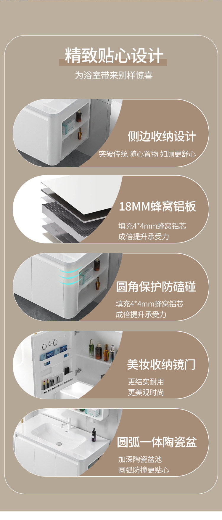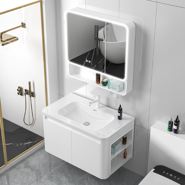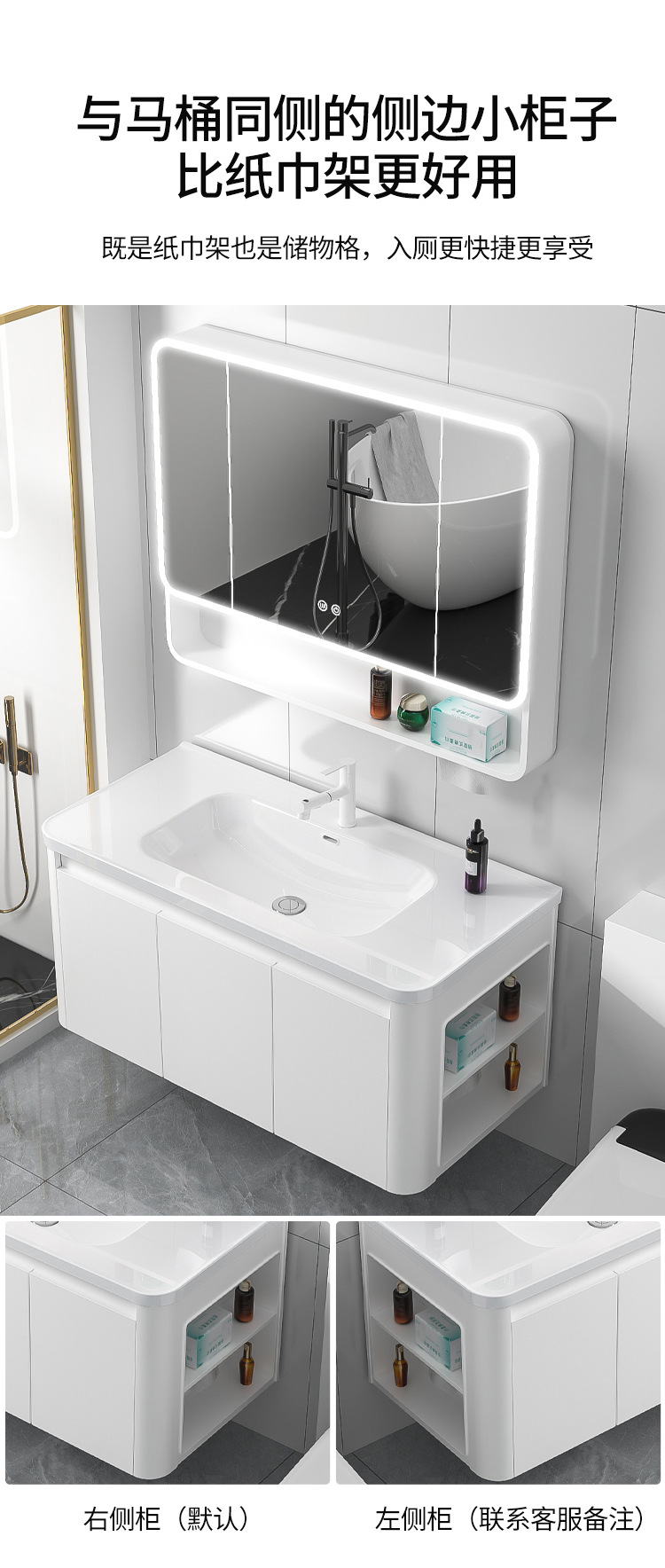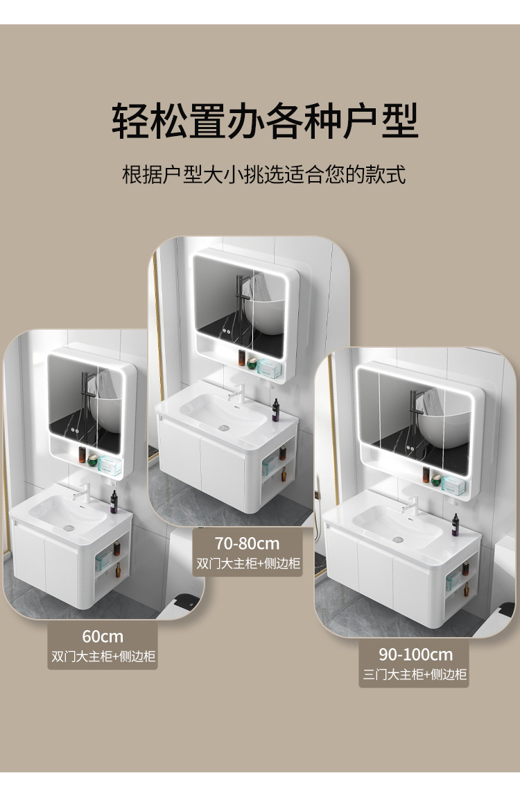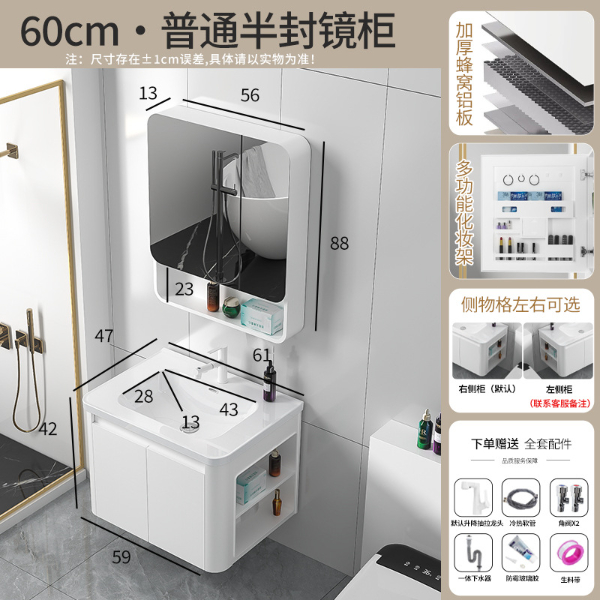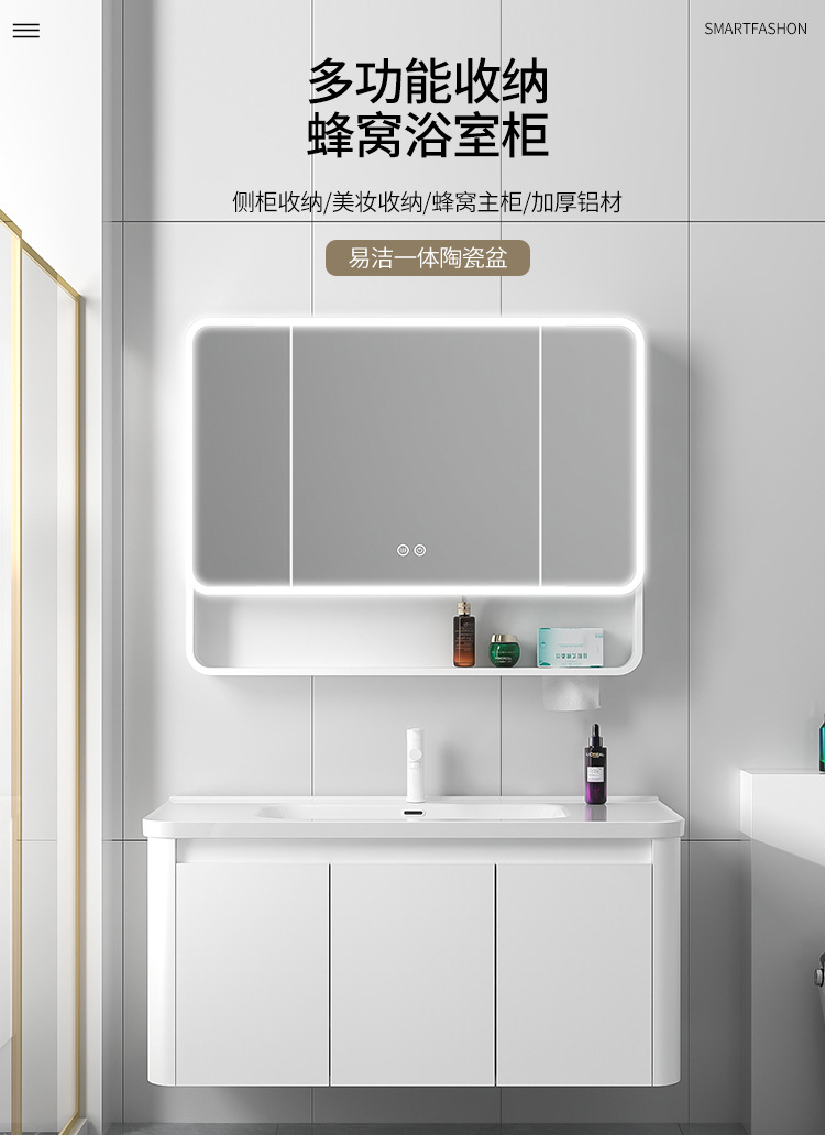 圆弧蜂窝铝浴室柜组合带侧边收纳白色(101-61)