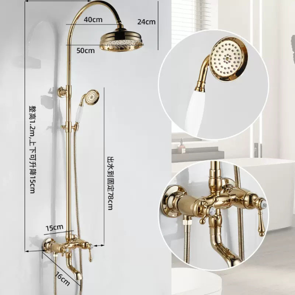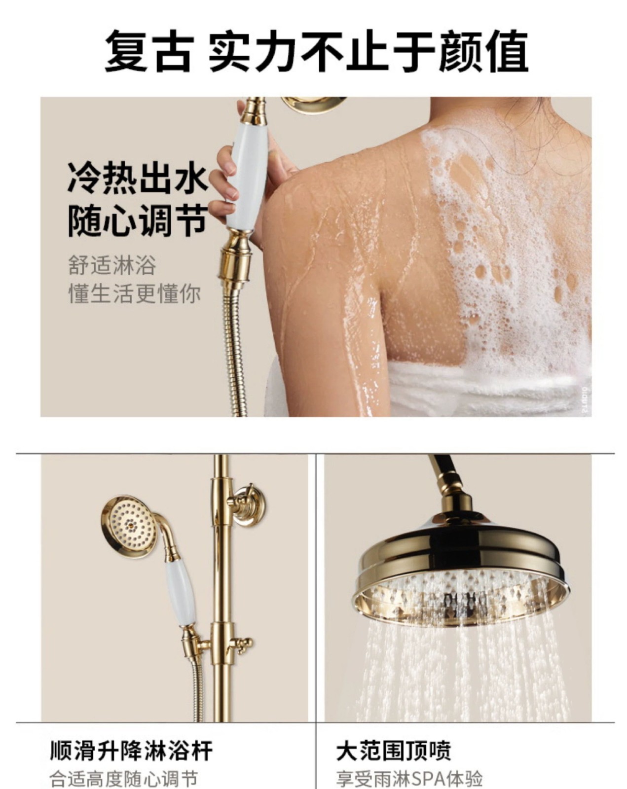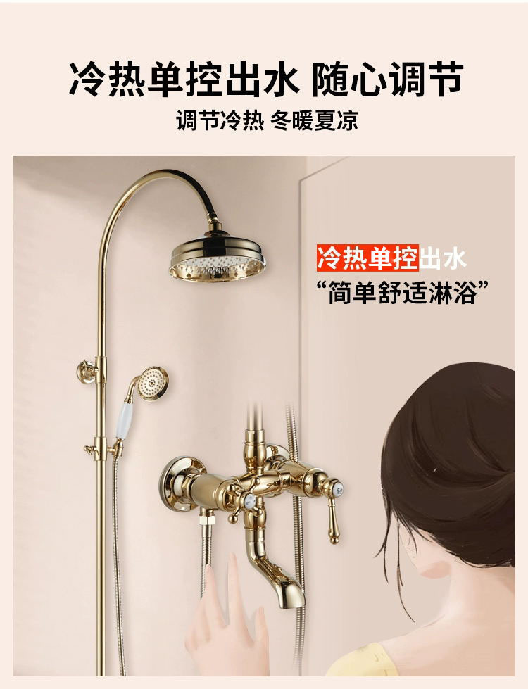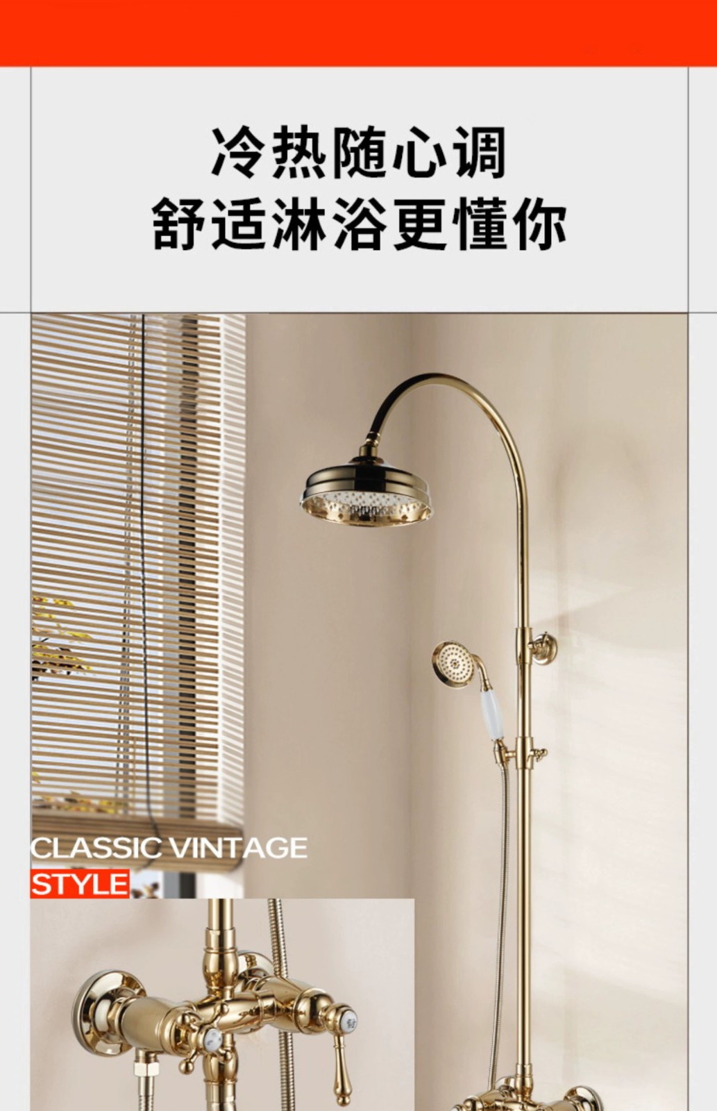 轻奢法式黄铜金色花洒复古家用淋浴(101-64)