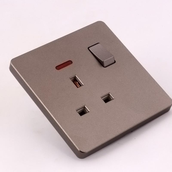 英标插座面板一开13A多功能拉丝灰色墙壁插座(103-12)