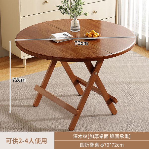 家用折叠圆木桌餐桌茶色加厚70圆面免安装桌高72CM(103-18)