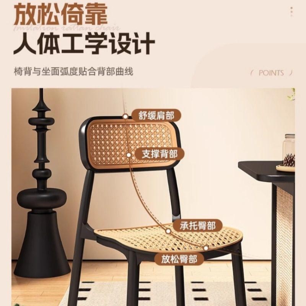 椅子藤编北欧中古餐椅黑色进口外贸大编藤承重800斤(103-19)