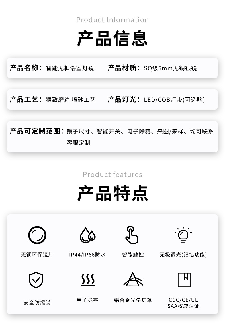 BOLEN方形智能浴室镜卫生间LED(101-80)