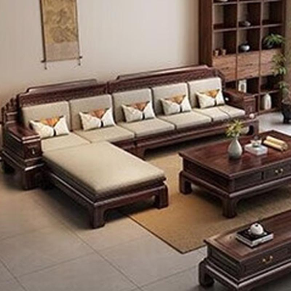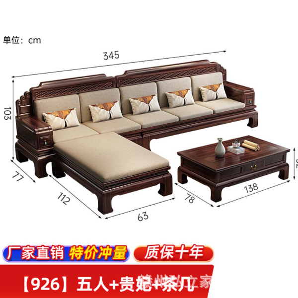 乌金木实木客厅组合沙发五人位+贵妃+茶几(201-2)