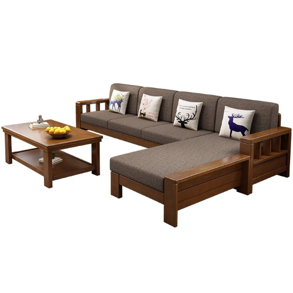 实木沙发现代简约新中式四人位+贵妃+茶几(201-6)