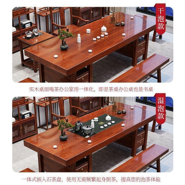 1.8米实木大板花梨色茶桌椅组合简约石盘款1富贵椅4围椅(201-7)