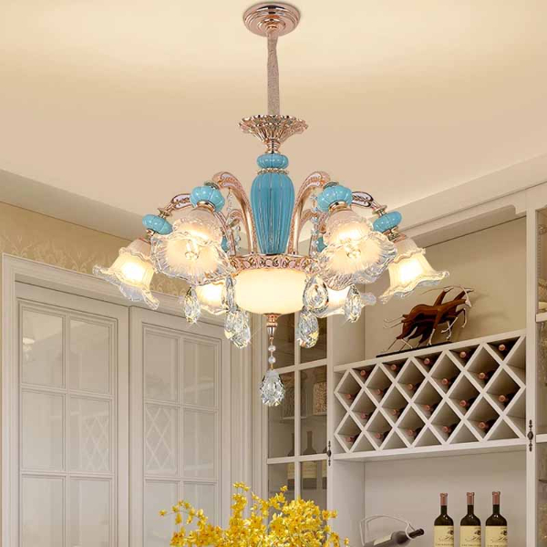 奢华欧式吊灯卧室餐厅客厅K9水晶挂饰吊灯6头款