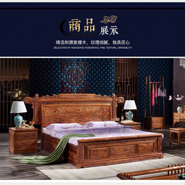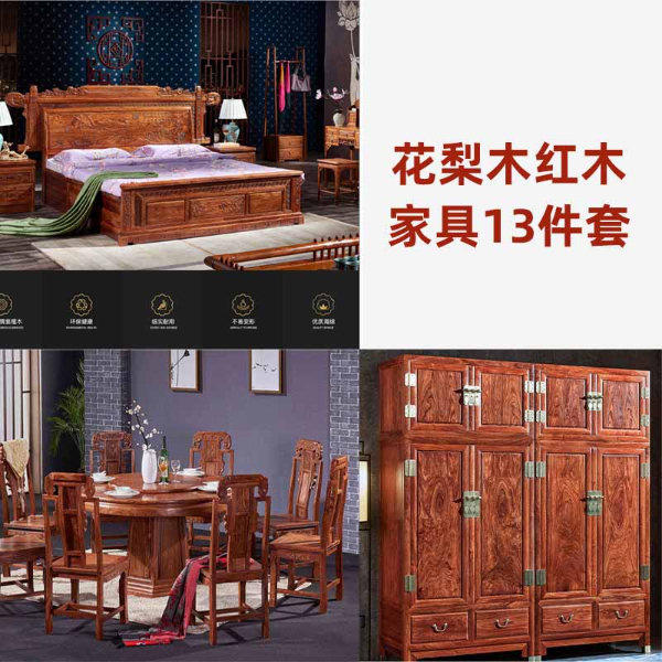 花梨木红木中式家具桌椅床衣柜13件套