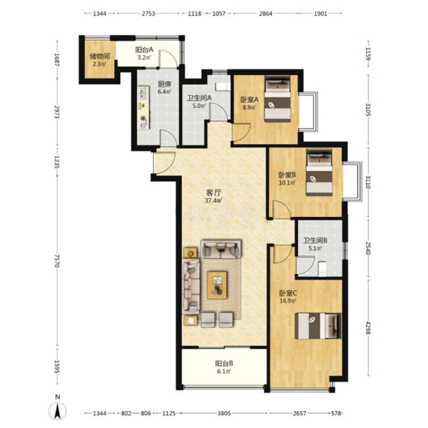 太原恒大御景湾中楼层采光好3室2厅133㎡